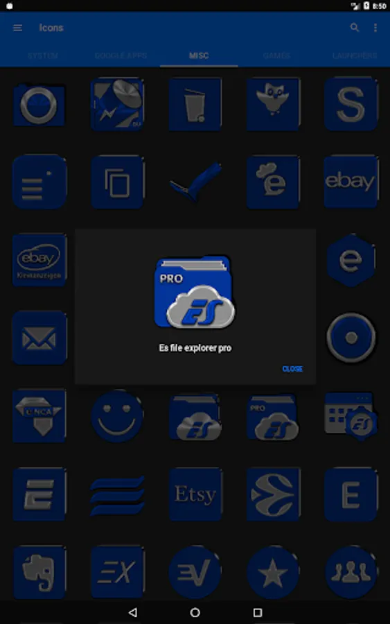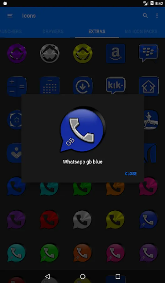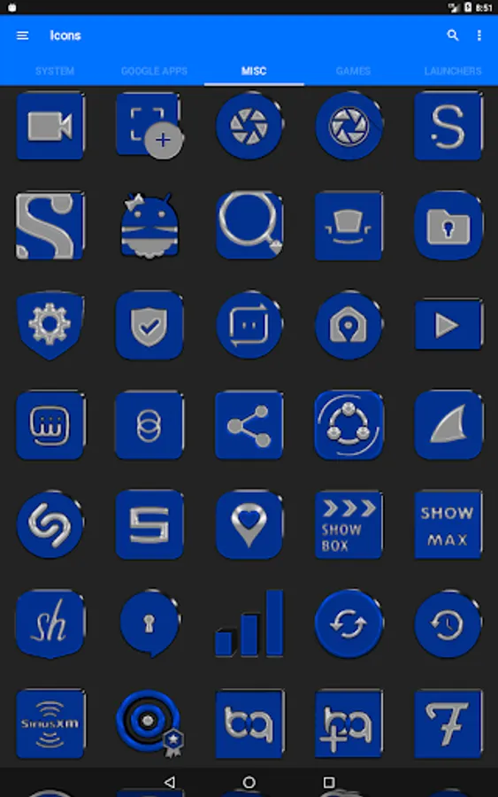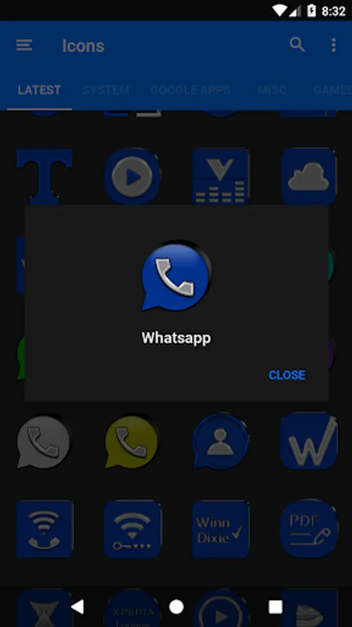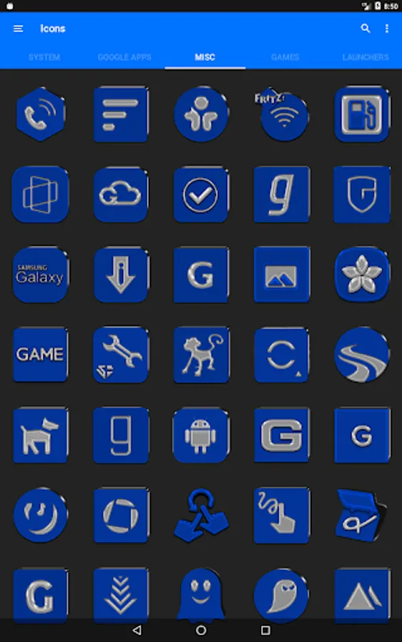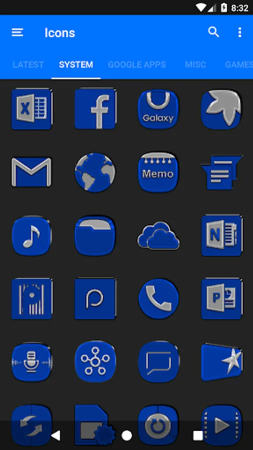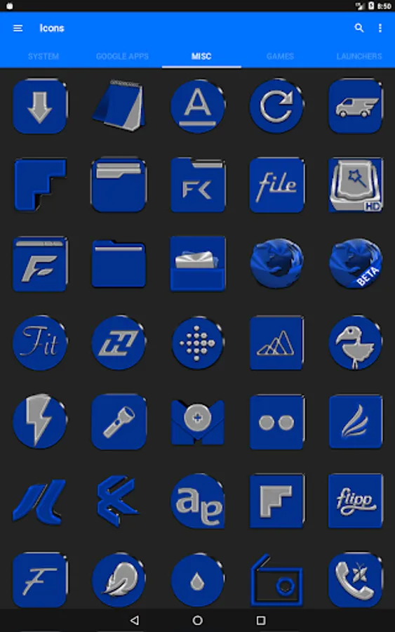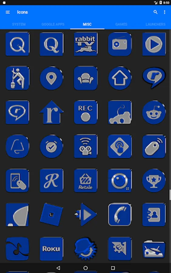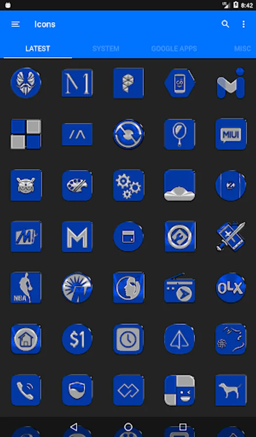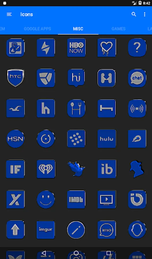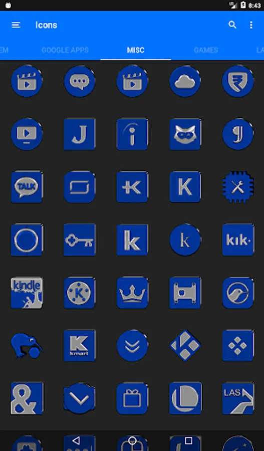 3.Select the icon, this will show your icon packs, select Blue IP and choose your favourite icon, Built-in Search Feature within the App.