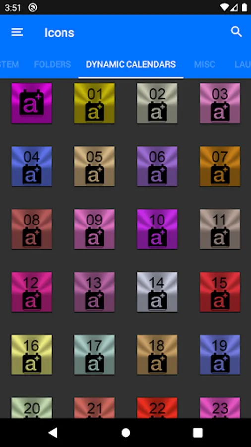 3.Select the icon, this will show your icon packs, select Colors IP and choose your icon, Built-in Search Feature within the App.
