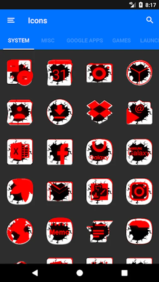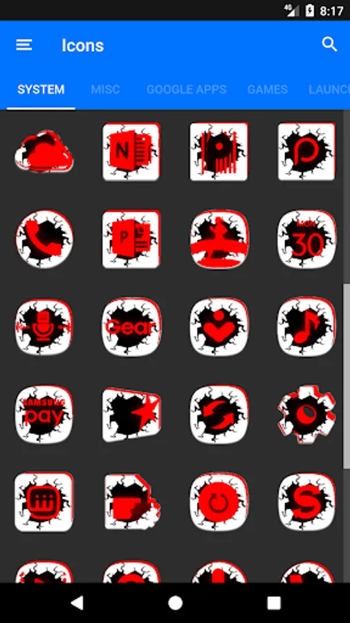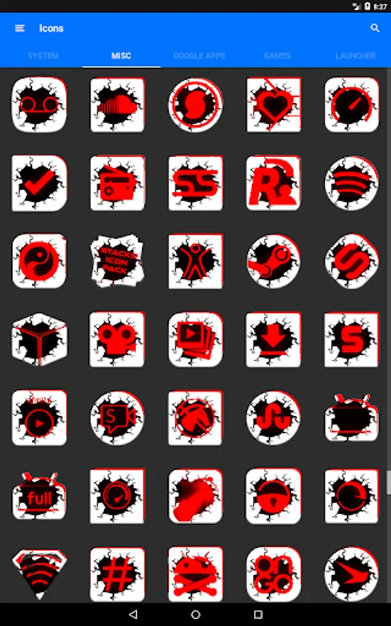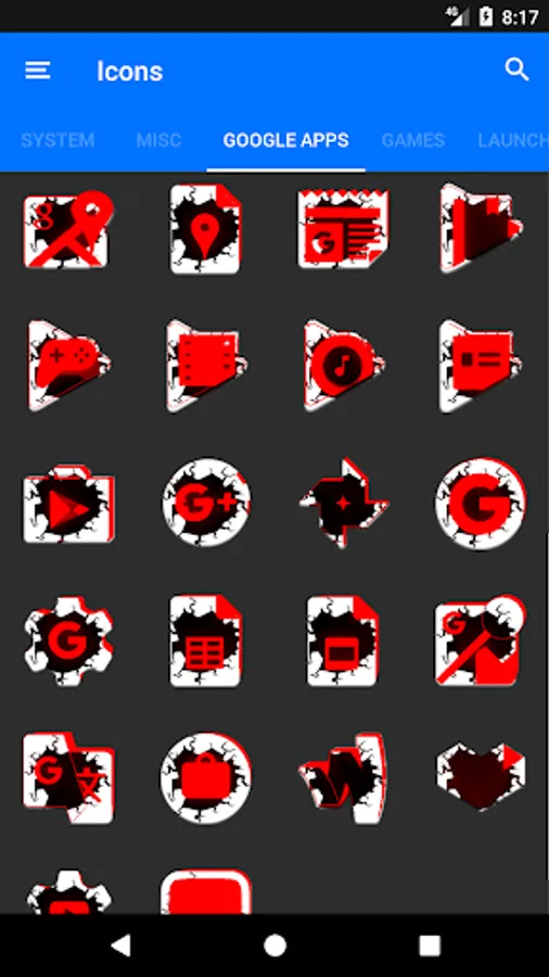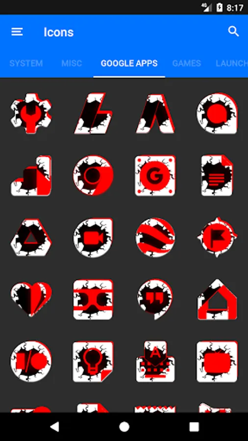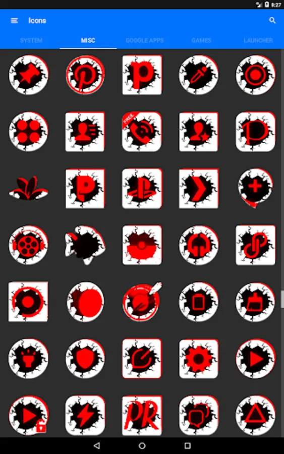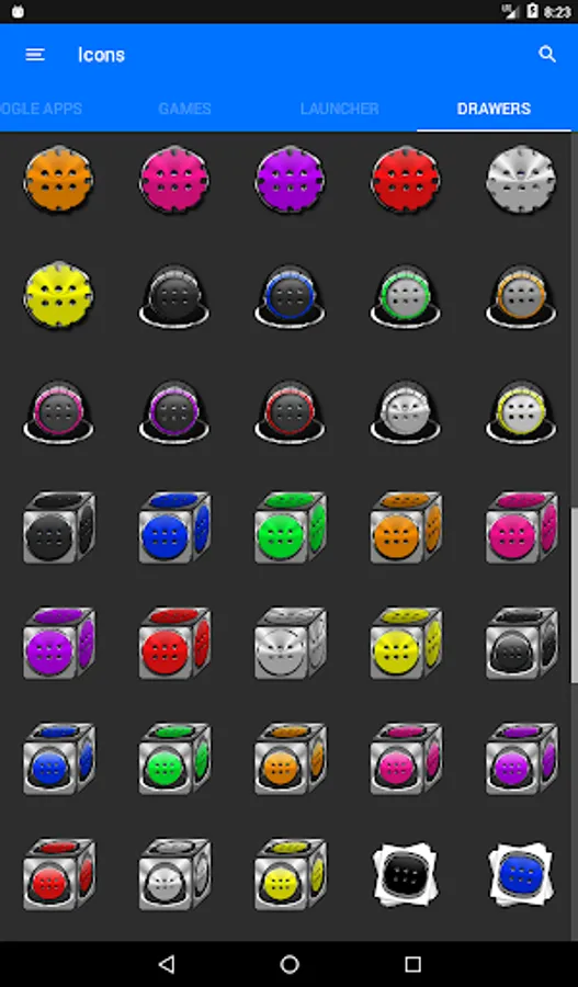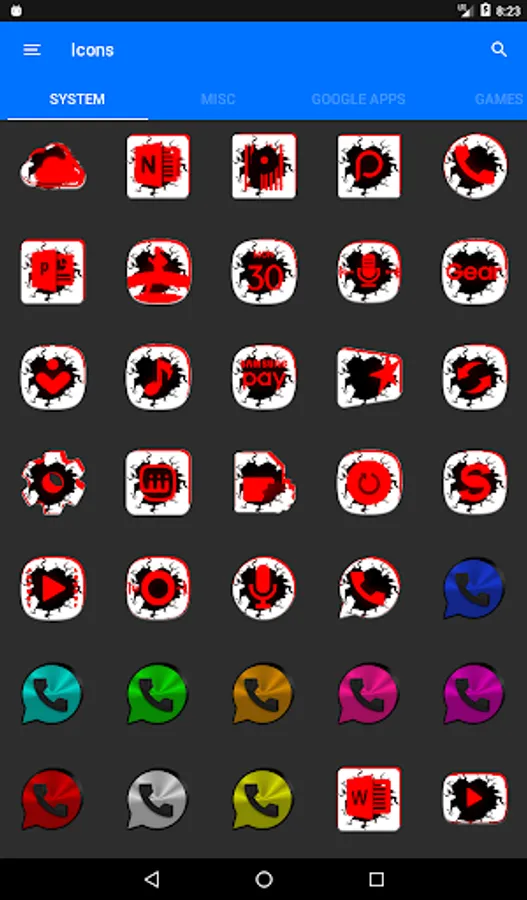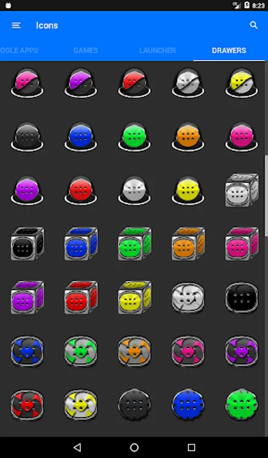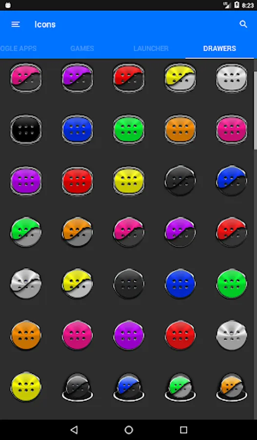 Icon Pack contains 5600+ HD Icons for mobile phones and tablets, tap on "See More" at the bottom of the page or search for "Ronald Dwk" for more icon packs, there are over 300 icon packs both free & paid to choose from in different colors, shapes and designs.