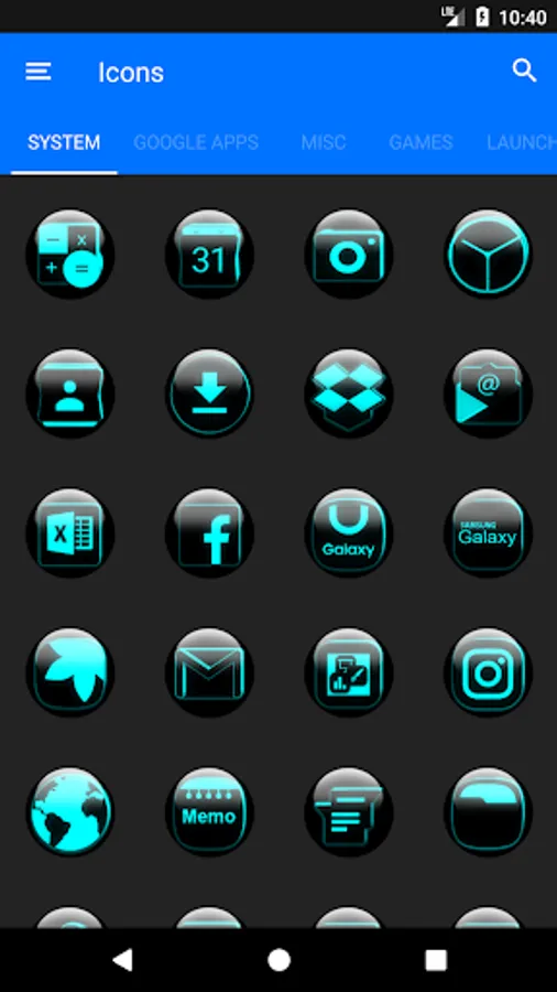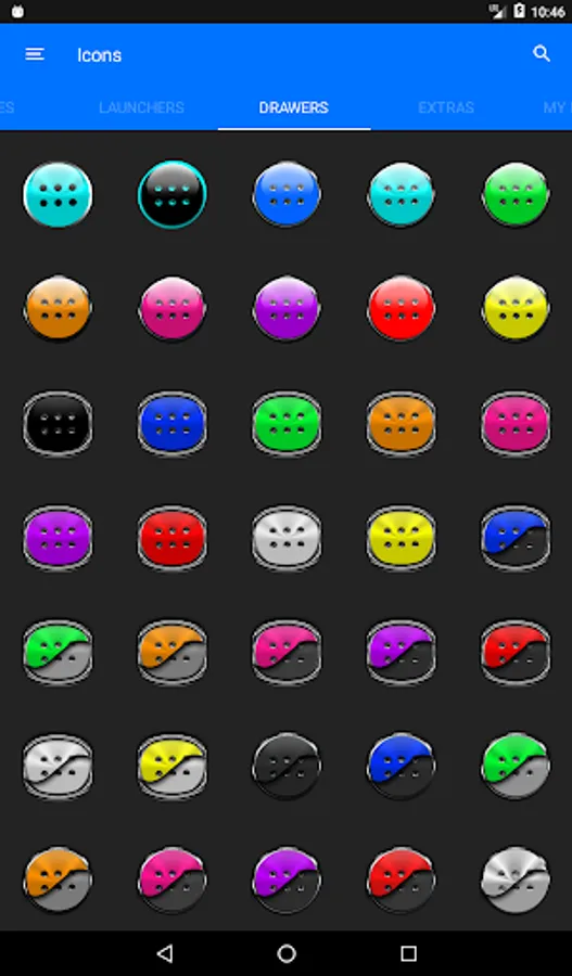 Icon Pack contains 7600+ HD Icons for mobile phones and tablets, Tap on "See More" at the bottom of the page or search for "Ronald Dwk" for more icon packs, there are over 300 icon packs both free & paid to choose from in different colors, shapes and designs.