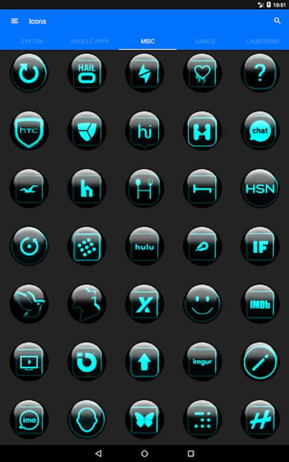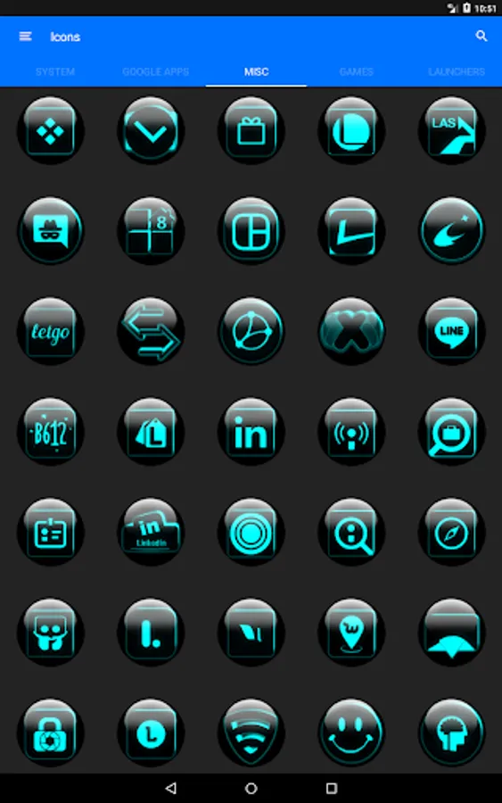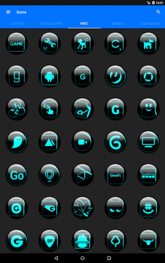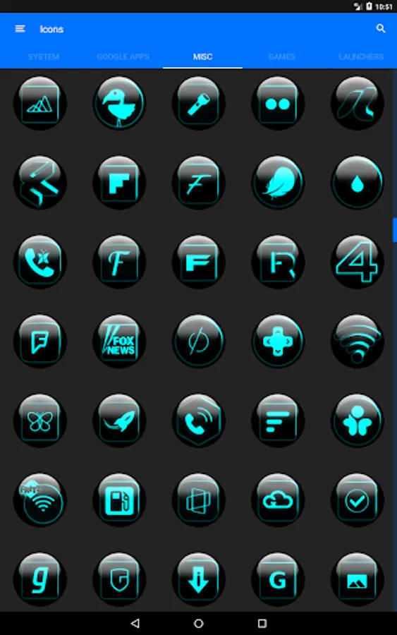 3.Select the icon, this will show your icon packs, select CGO IP and choose your favourite icon, Built-in Search Feature within the App.