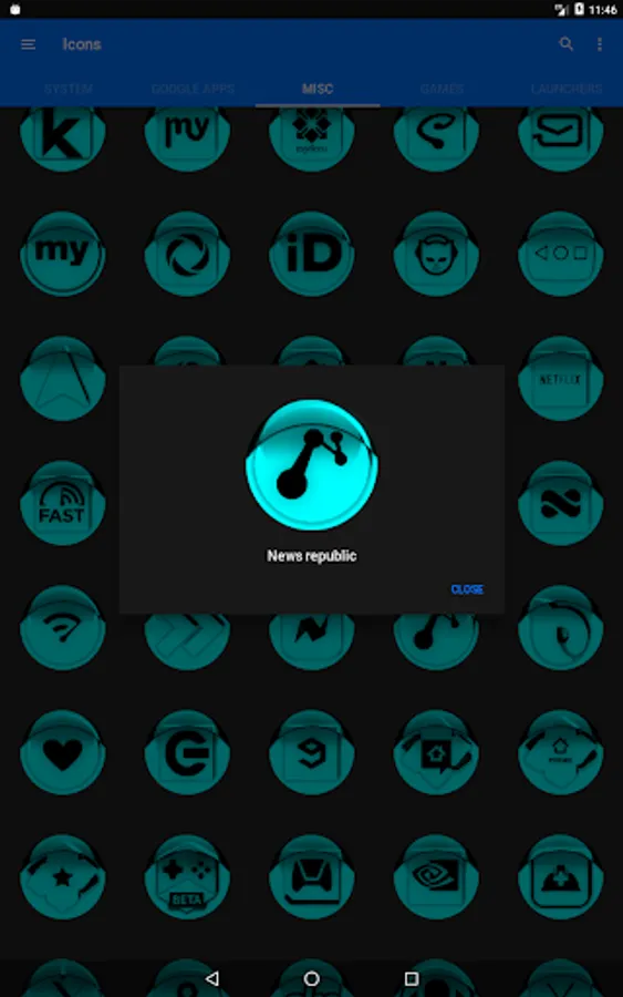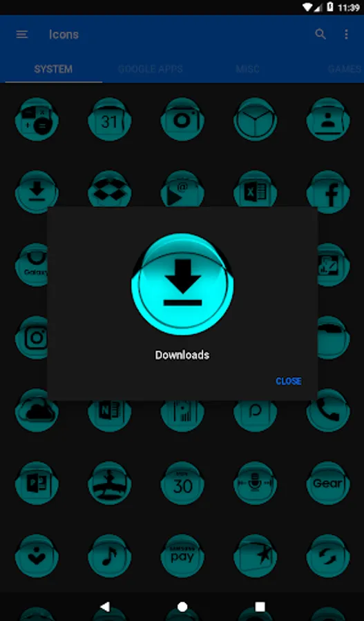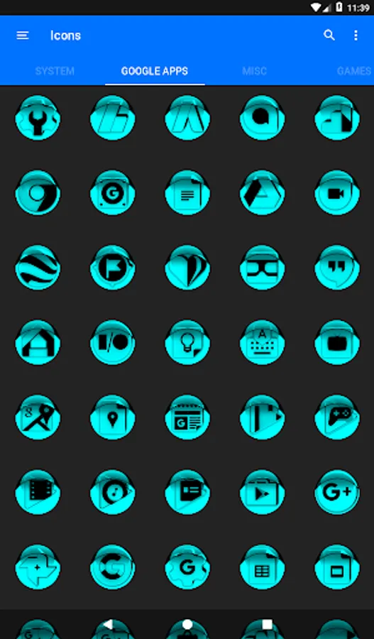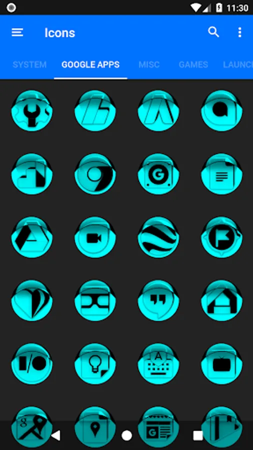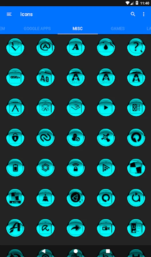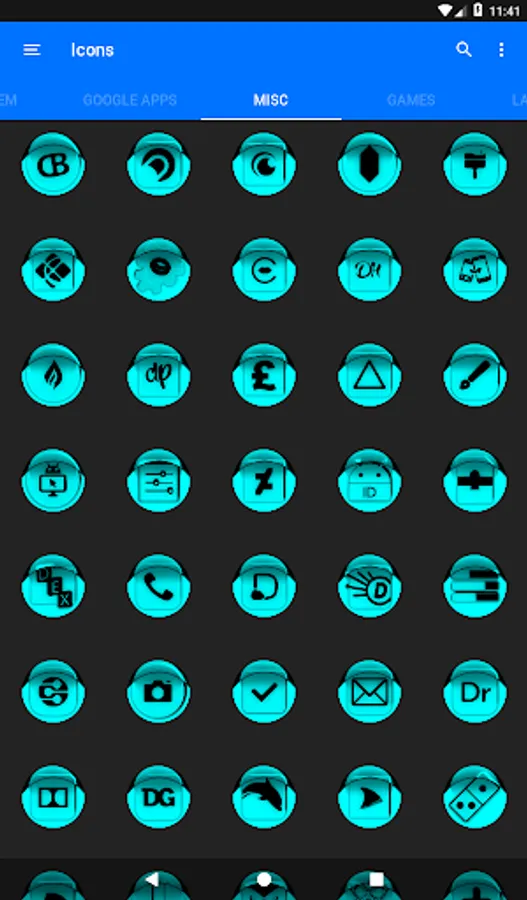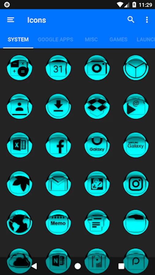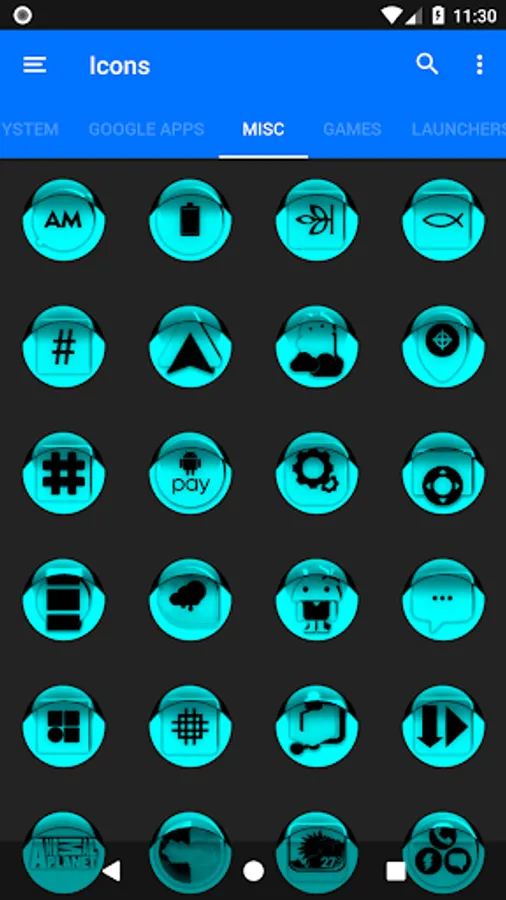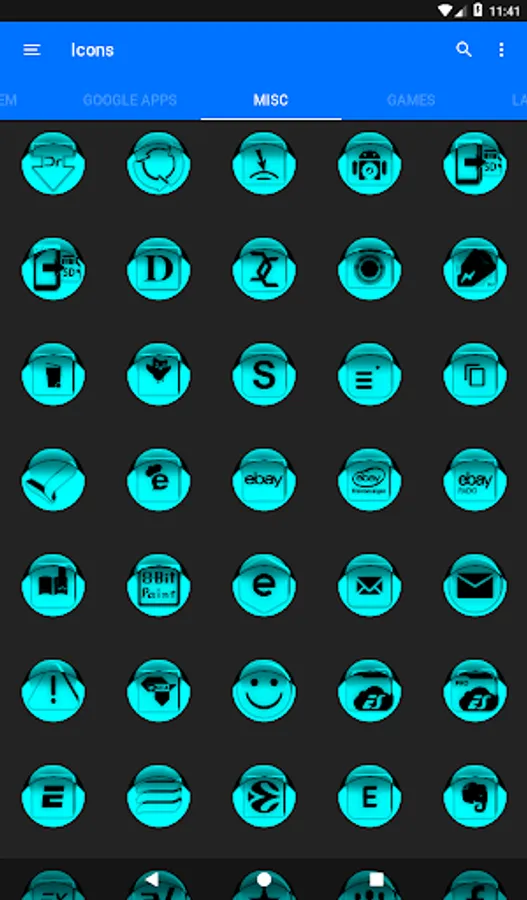 3.Select the icon, this will show your icon packs, select Cyan S1 and choose your favourite icon, Built-in Search Feature within the App.