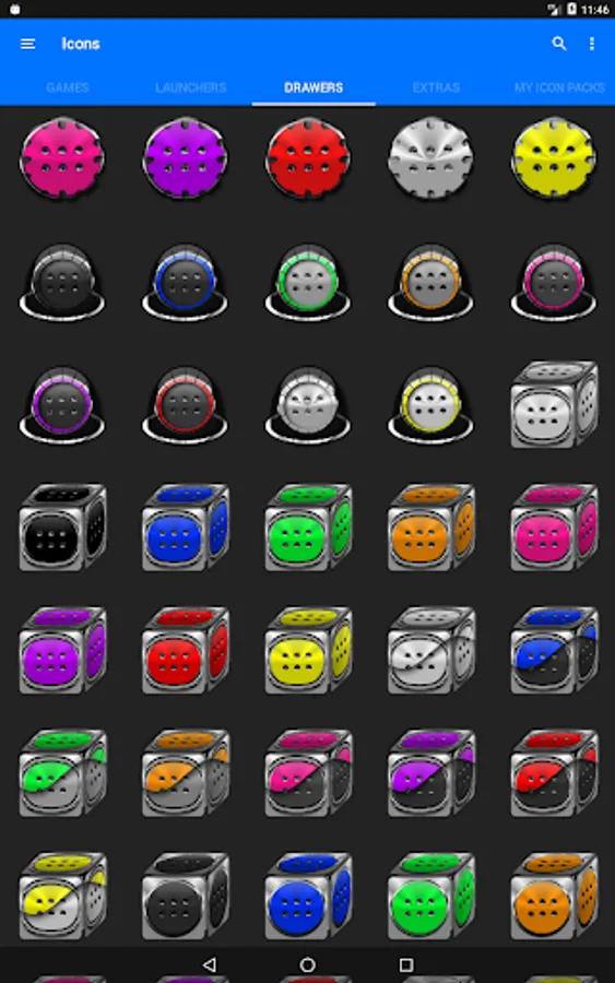 Icon Pack contains 7600+ HD Icons for mobile phones and tablets, tap on "See More" at the bottom of the page or search for "Ronald Dwk" for more icon packs, there are over 300 icon packs both free & paid to choose from in different colors, shapes and designs.