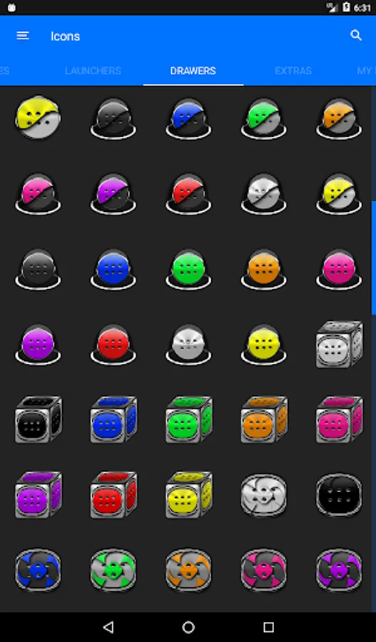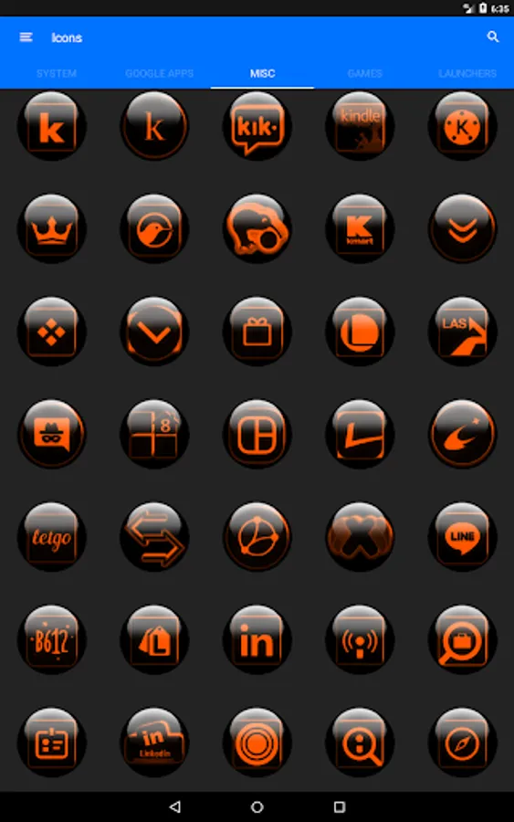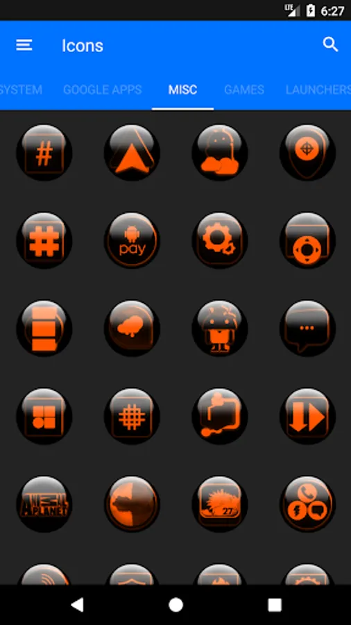 Icon Pack contains 7600+ HD Icons for mobile phones and tablets, Tap on "See More" at the bottom of the page or search for "Ronald Dwk" for more icon packs, there are over 300 icon packs both free & paid to choose from in different colors, shapes and designs.