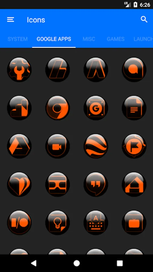3.Select the icon, this will show your icon packs, select OGO IP and choose your favourite icon, Built-in Search Feature within the App.