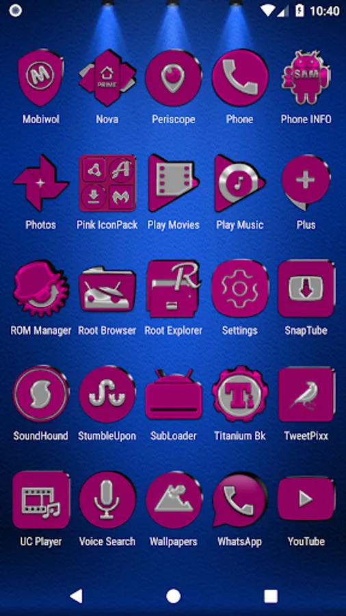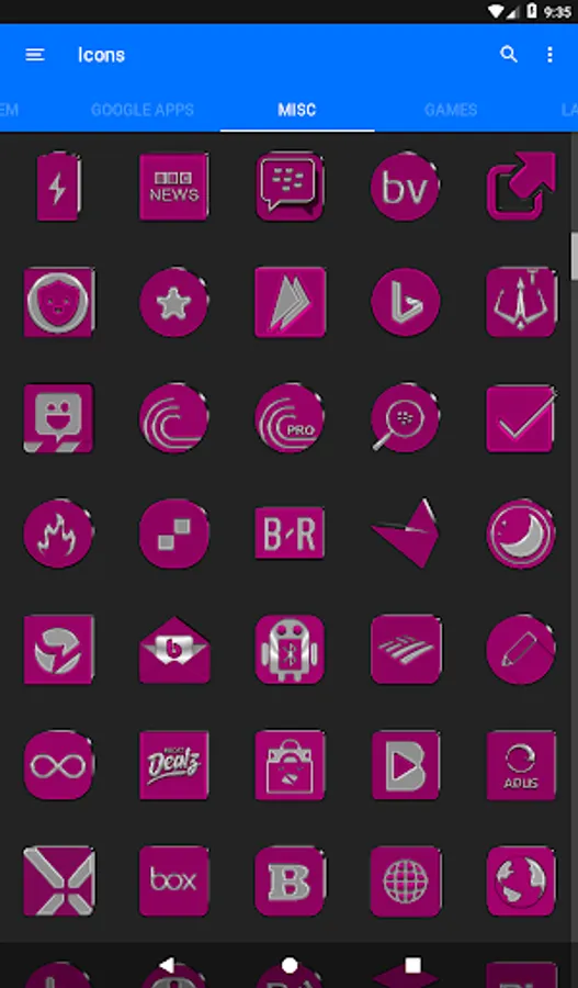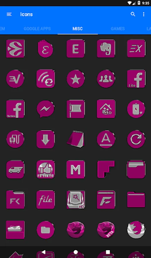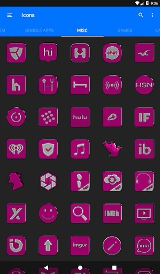 3.Select the icon, this will show your icon packs, select Pink IP and choose your icon, Built-in Search Feature within the App.