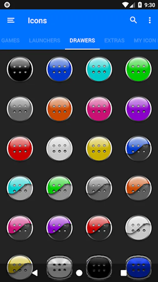 Icon Pack contains 4300+ Icons for mobile phones and tablets, tap on "See More" at the bottom of the page or search for "Ronald Dwk" for more icon packs, there are over 300 icon packs both free & paid to choose from in different colors, shapes and designs.