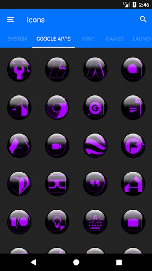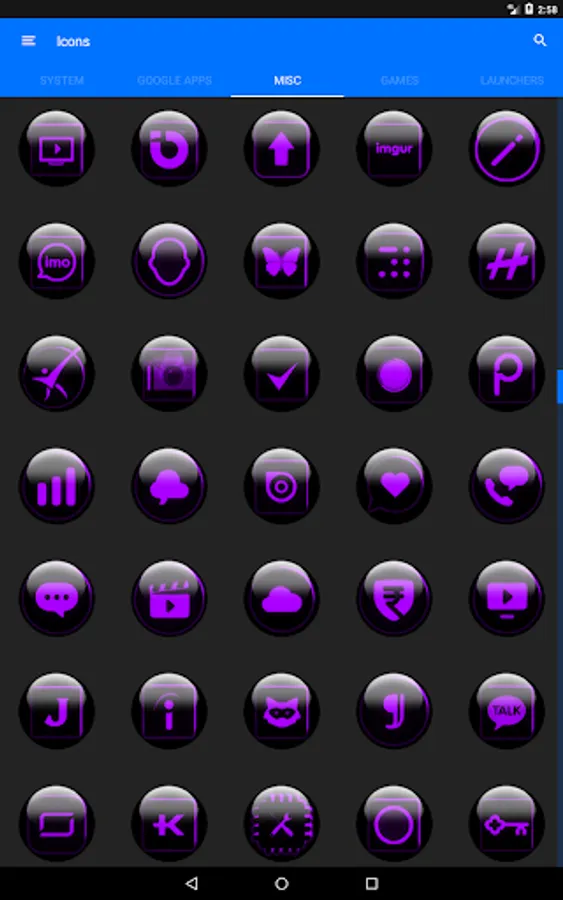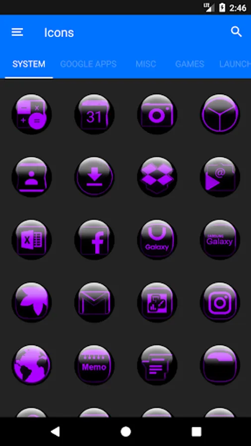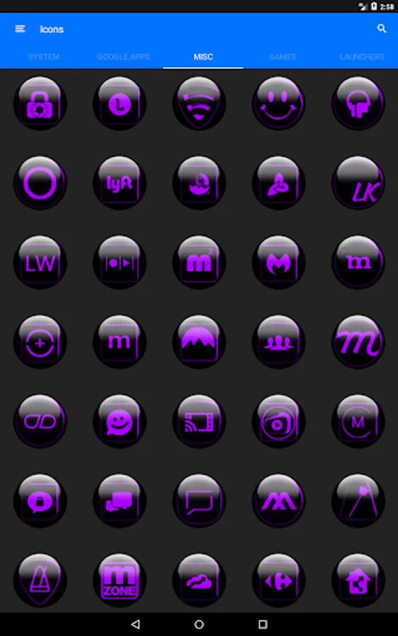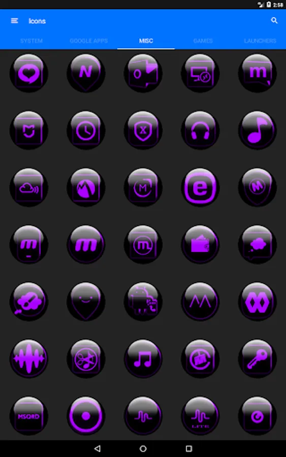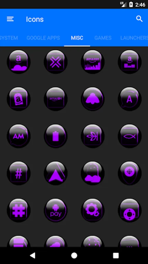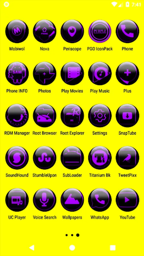 Icon Pack contains 7600+ HD Icons for mobile phones and tablets, Tap on "See More" at the bottom of the page or search for "Ronald Dwk" for more icon packs, there are over 300 icon packs both free & paid to choose from in different colors, shapes and designs.