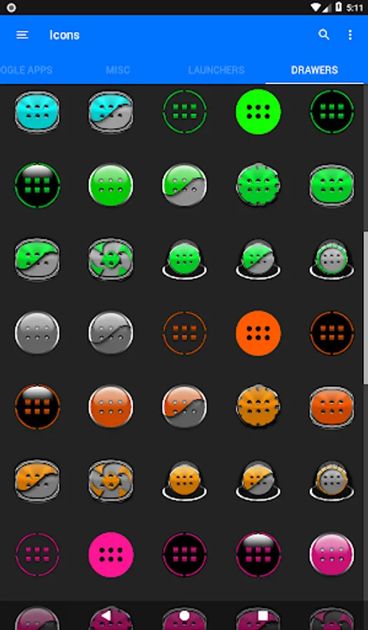 Icon Pack contains 10 000+ HD Icons for mobile phones and tablets, tap on "See More" at the bottom of the page or search for "Ronald Dwk" for more icon packs, there are over 300 icon packs both free & paid to choose from in different colors, shapes and designs.