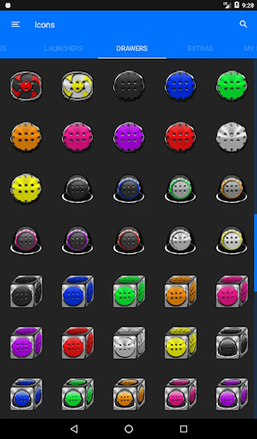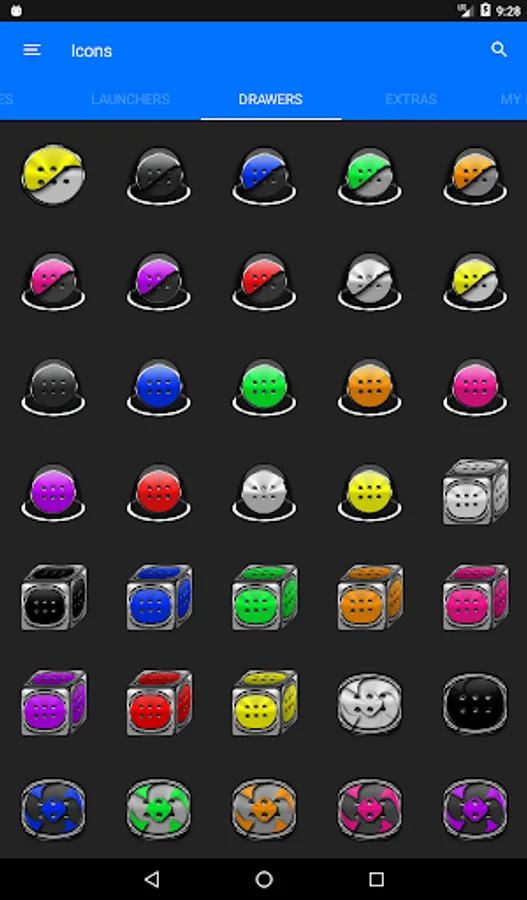Icon Pack contains 7900+ HD Icons for mobile phones and tablets, Tap on "See More" at the bottom of the page or search for "Ronald Dwk" for more icon packs, there are over 300 icon packs both free & paid to choose from in different colors, shapes and designs.