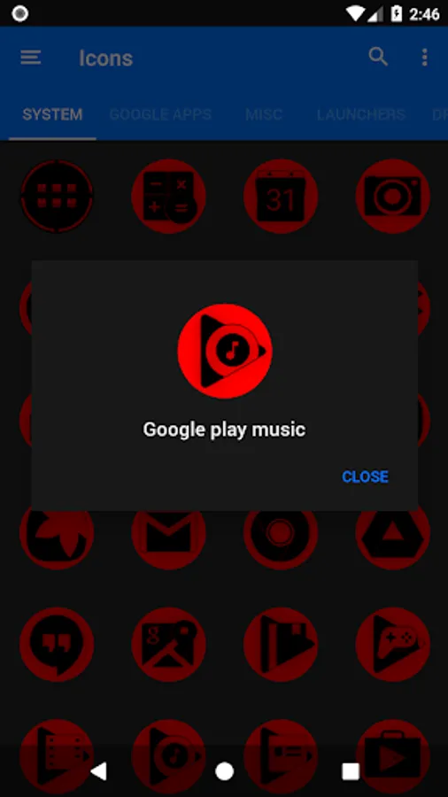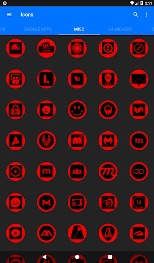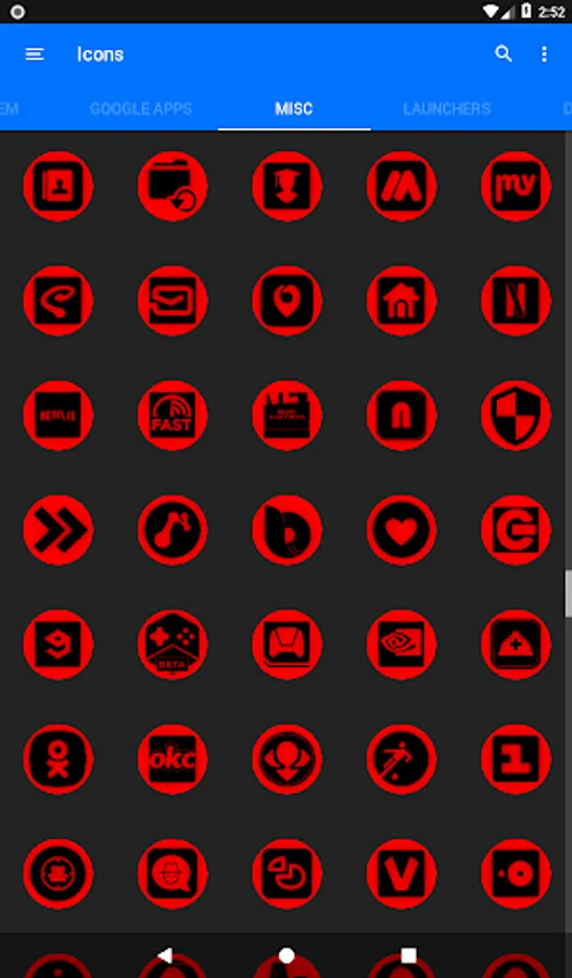 3.Select the icon, this will show your icon packs, select Oreo Red and choose your favourite icon, Built-in Search Feature within the App.