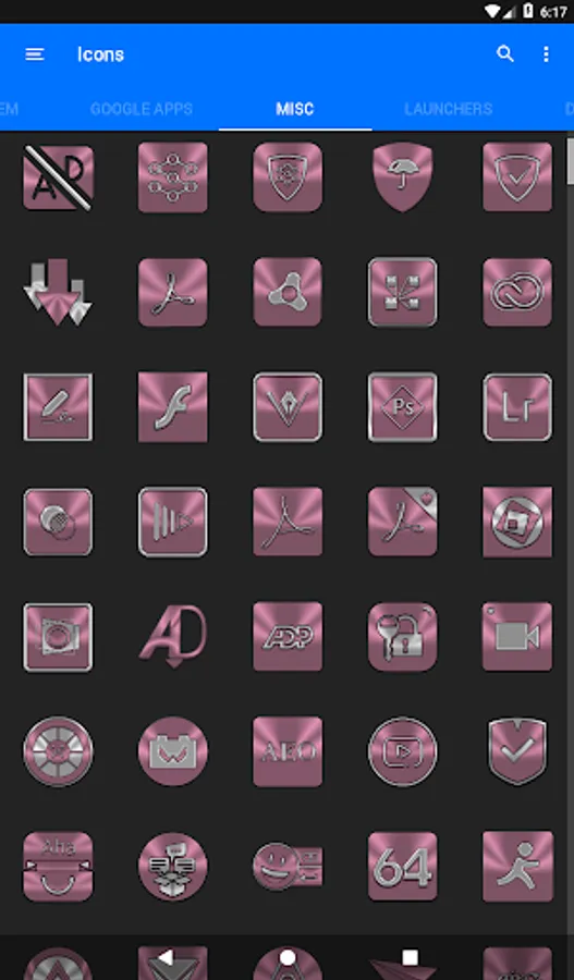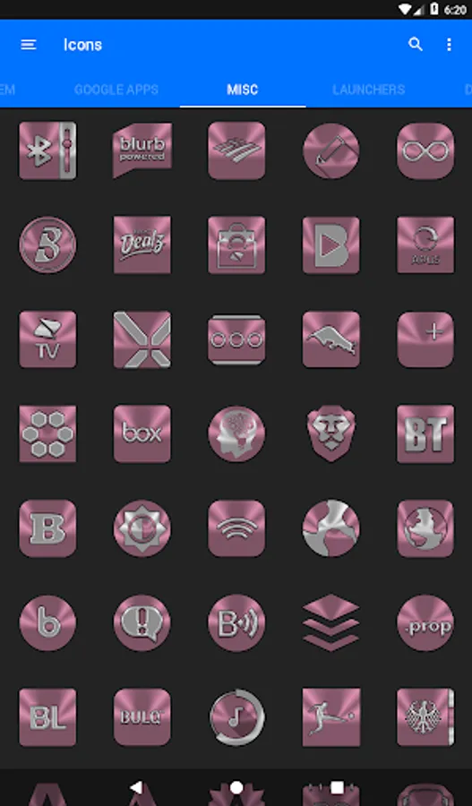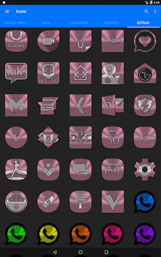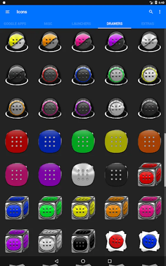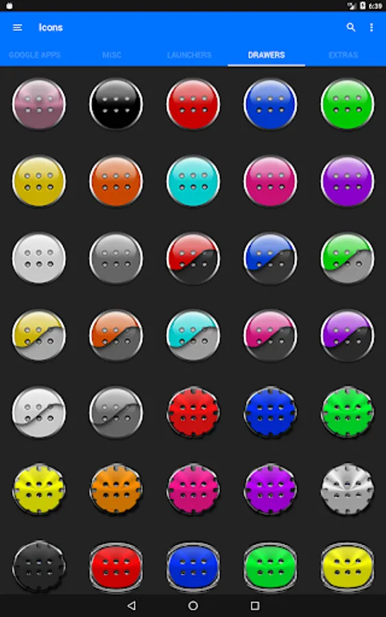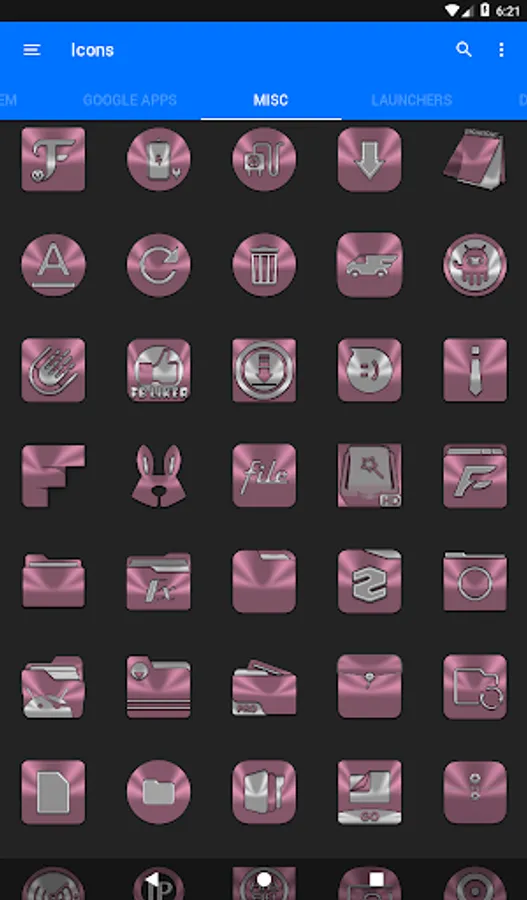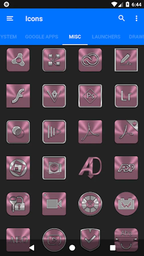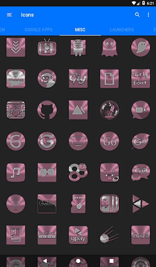 Icon Pack contains 5100+ HD Icons for mobile phones and tablets, tap on "See More" at the bottom of the page or search for "Ronald Dwk" for more icon packs, there are over 300 icon packs both free & paid to choose from in different colors, shapes and designs.