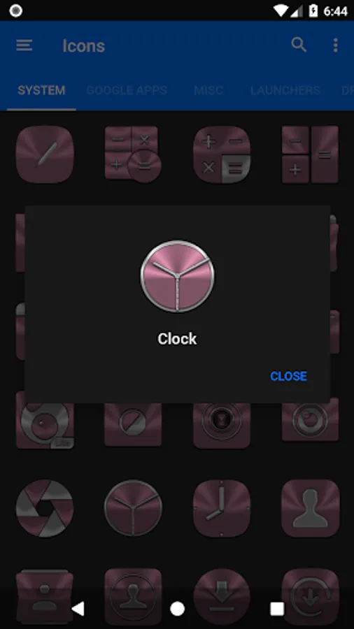 3.Select the icon, this will show your icon packs, select Lilac Purple and choose your favourite icon, Built-in Search Feature within the App.