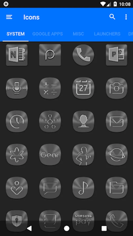 Icon Pack contains 5100+ HD Icons for mobile phones and tablets, tap on "See More" at the bottom of the page or search for "Ronald Dwk" for more icon packs, there are over 300 icon packs both free & paid to choose from in different colors, shapes and designs.