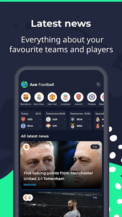 "I've just checked out the new Ace Football app – it's super easy to navigate, jump in and check it out!"
