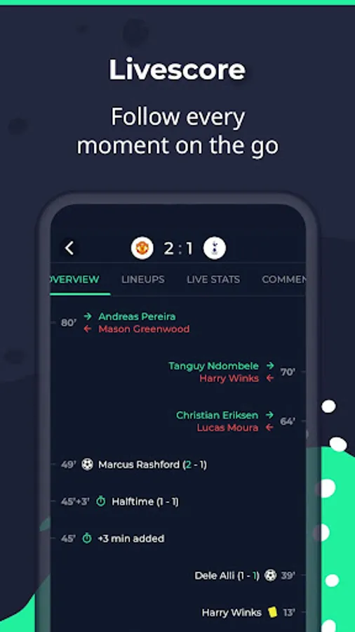 See match statistics, lineups, player stats, squads, goals, cards and substitutions.