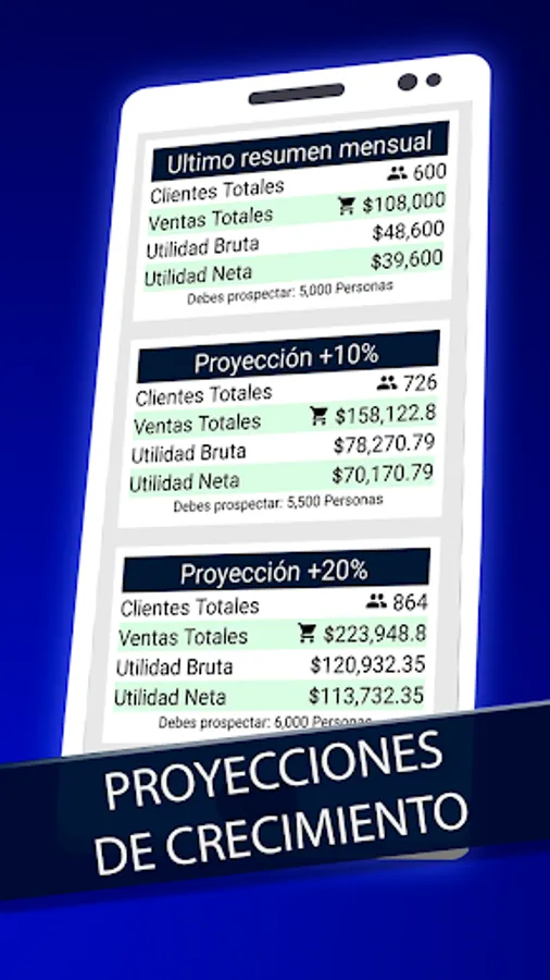 This application will help you in step number one in the control, you will no longer have to perform the heavy calculations manually, just now you must enter the data requested by the interface and she will be in charge of delivering the results immediately without waiting , it also allows you to see future projections of your finances with 10 and 20% more customers.