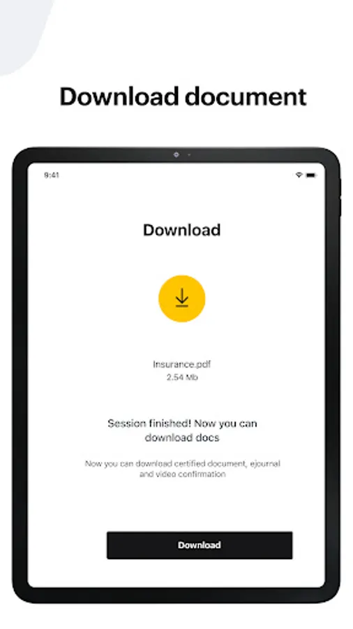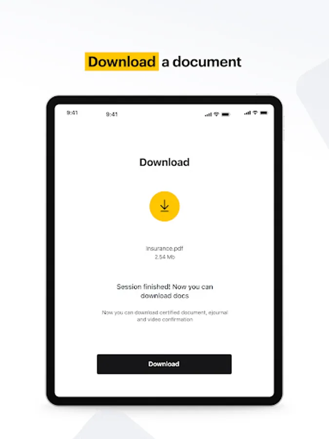 After notarization session is complete you will be able to instantly view, download, save and forward the notarized document from the app via email, DropBox, Box, Evernote, WhatsApp, Google Drive and more. You will also receive a separate email with signed and notarized document.
