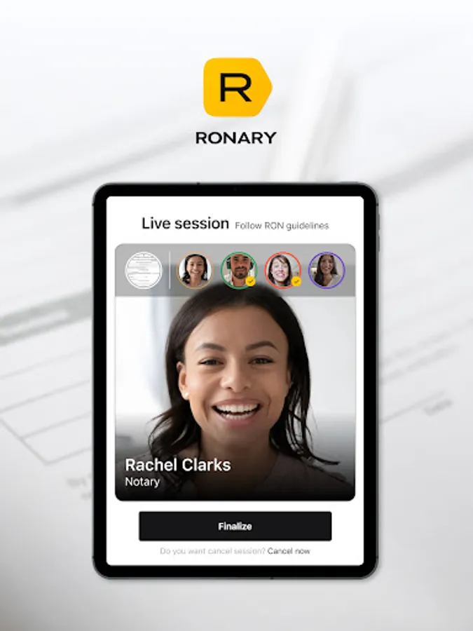 Ronary is a user-friendly app designed to connect you with a remote online notary to conduct secure, fast and time efficient notarizations of your documents. All you need is a smartphone or tablet!