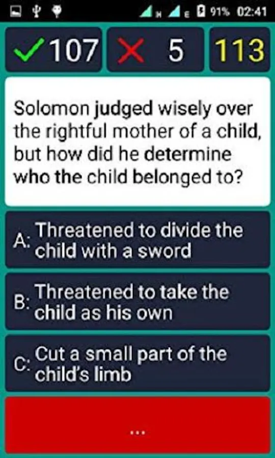 Bible Quiz and Answers teaches you about Jesus Christ and his disciples, moral lessons, commandments, and historical events from the Holy Bible. This bible quiz game prepares you to win any Bible quiz contest. Thousands of bible questions and answers are available in this bible quiz game, ranging from creation to Jesus Christ and his disciples to kings and rulers.