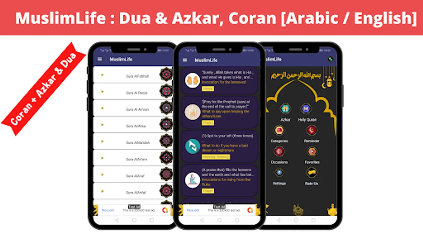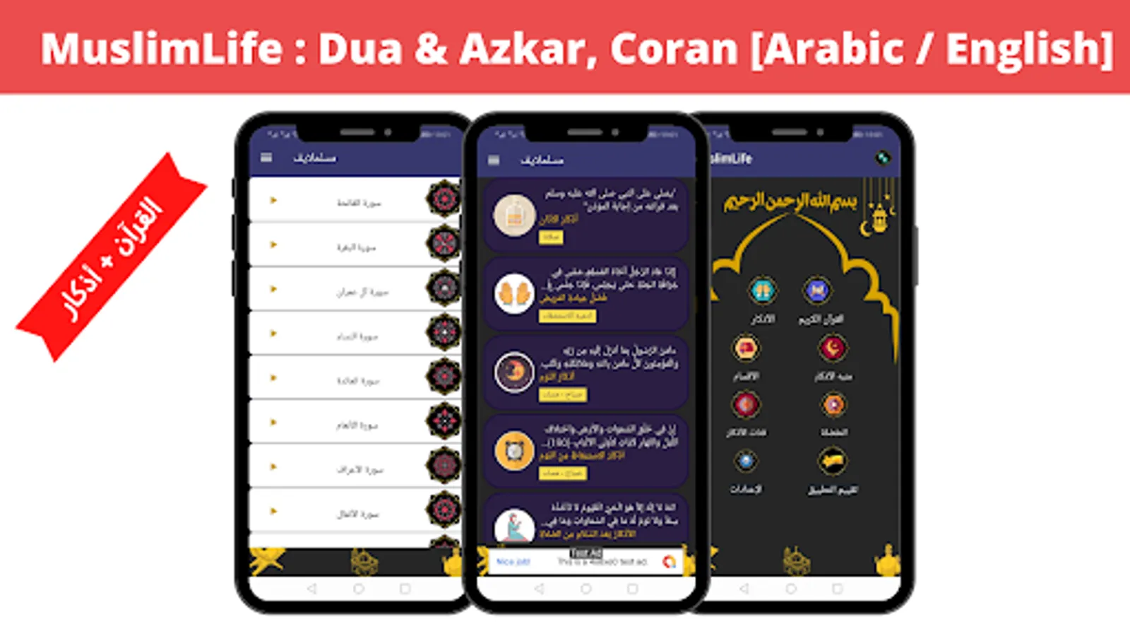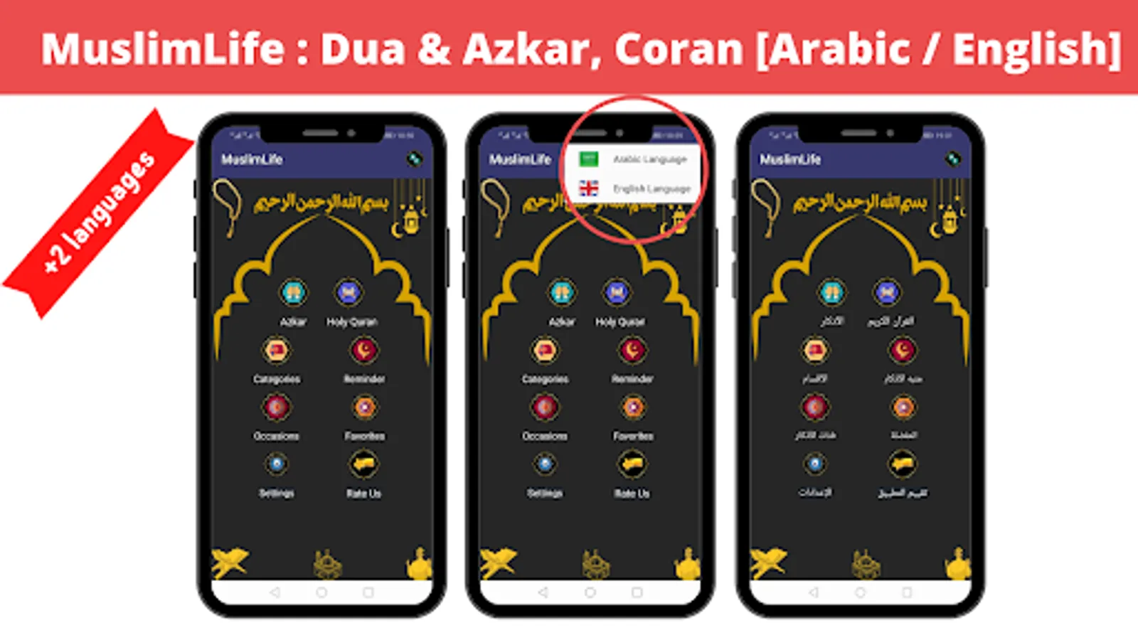 يحتوي MuslimLife- مسلملايف أو حياة المسلم باللغتين العربية و الإنجليزية على كل ما يحتاجه المسلم ، بدءًا من :