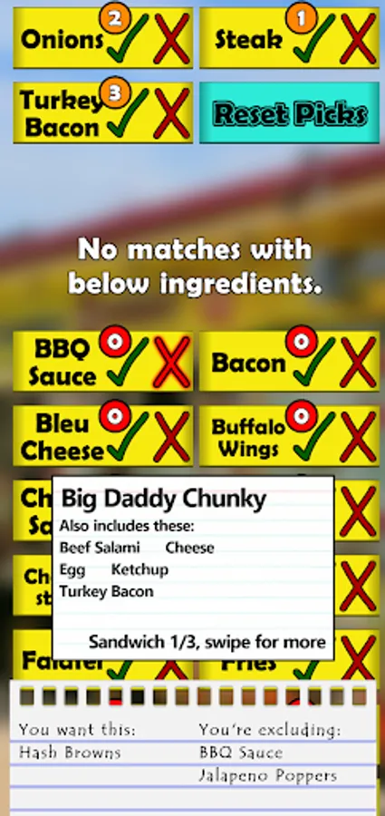 The Fat Sandwich Finder is an unofficial app that helps you filter out different Fat Sandwiches based on what you do and don't want. All you need to do is tap on what ingredients you want, and you'll be shown the full selection of sandwiches that match your search.