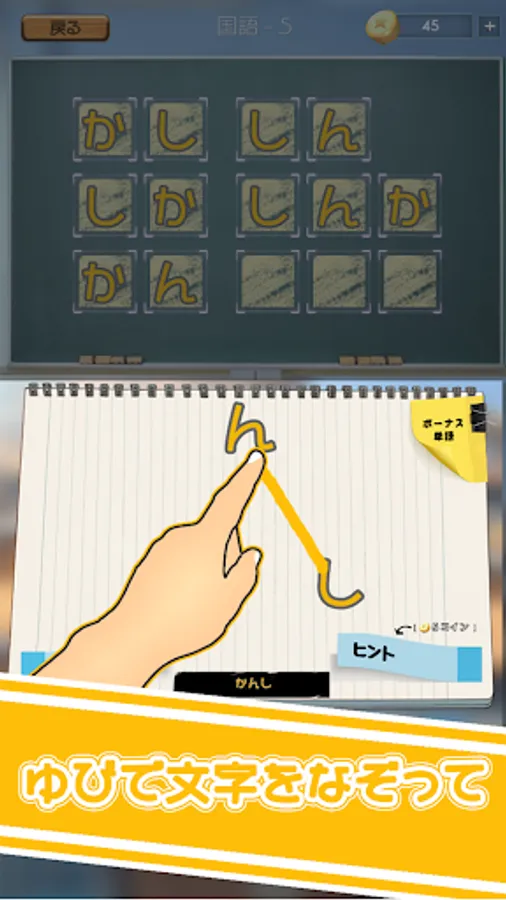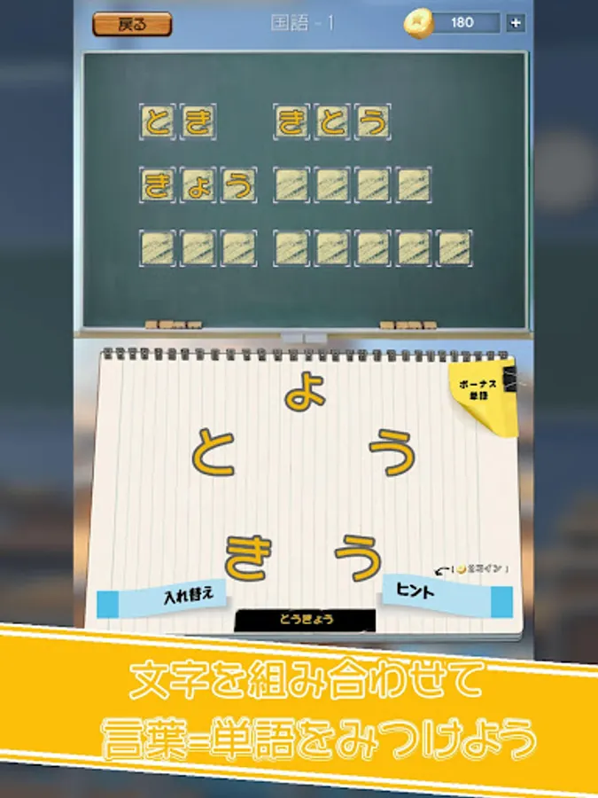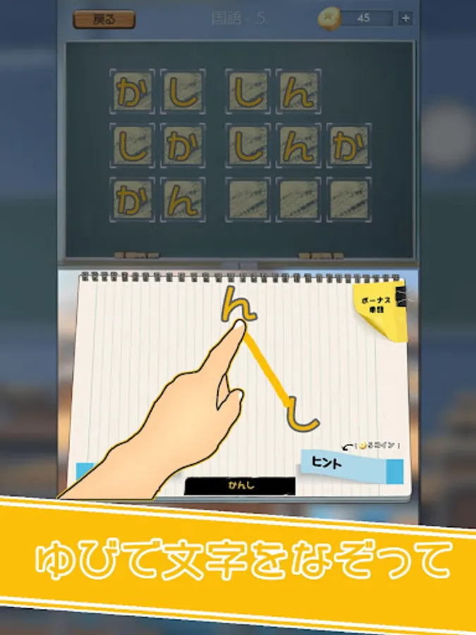 Improve your Japanese by linking the Japanese hiragana characters together. Take a break from memorizing the language and approach learning in a different perspective. By connecting the hiragana characters together you can unfold a world of new vocabulary that you can learn and share with your friends.