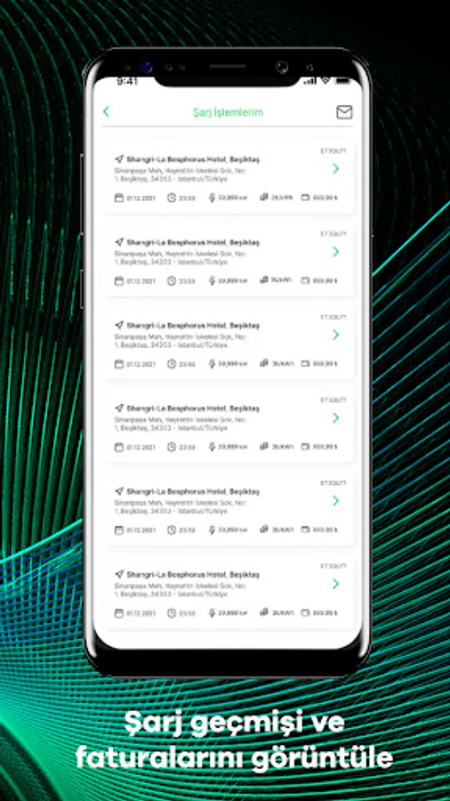 You can follow the charging process and view your past charging and billing history through the application.