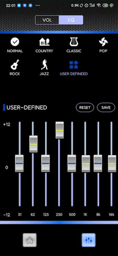 4,EQ: You can choose the corresponding mode according to the built-in EQ effect, but also according to preferences custom EQ