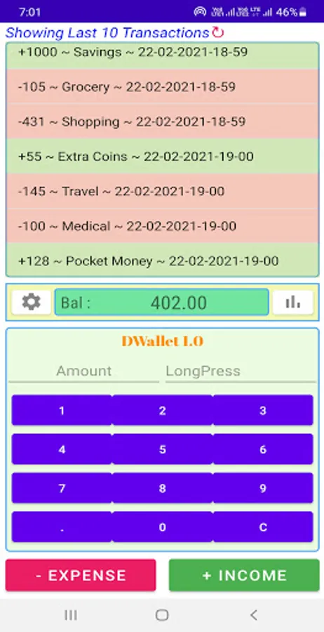 DWallet : 1Tap Money Manager is specially made for money lovers. DWallet provides simple and easy way to track your money both income and expenses.