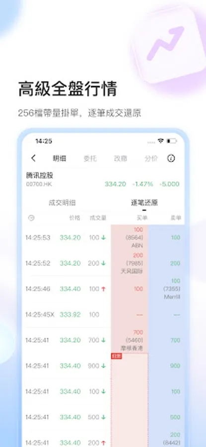 [Real-time market quotation] Provides a comprehensive Hong Kong and US stock market Lv2 market, black market market comparison function, and Hong Kong stock fulltick advanced full market market can view 256 stalls and transaction details, and track the sweeping/smashing seats in real time.