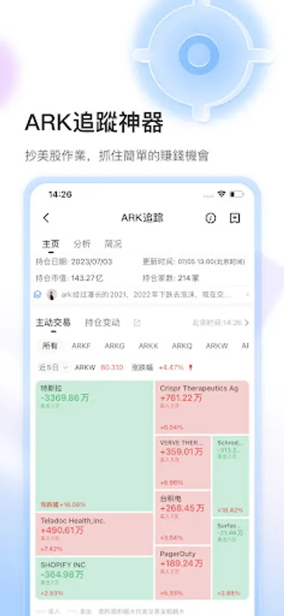 [ARK Fund Tracking] All-round tracking of ARK trading trends, including daily transactions, positions, transaction summary, scale redemption, etc., as well as historical operations of each individual stock. !