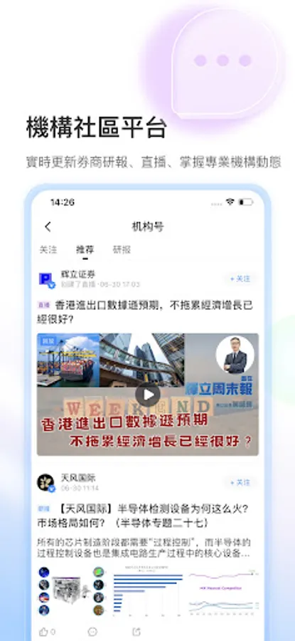 2. Gather investment research teams of multiple securities companies to analyze the market conditions and individual stock views live video, share and exchange investment experience, discuss with investment research analysts of various securities companies, ask stocks and post orders at any time, and answer any questions.