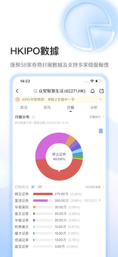 Real-time display of IPO margin data from dozens of Hong Kong brokerages including Phillip, Futu, Yaocai, Prudential, etc., statistics of current margin multiples and pre-deposited callback multiples, and help investors reserve quotas and participate in international placements.