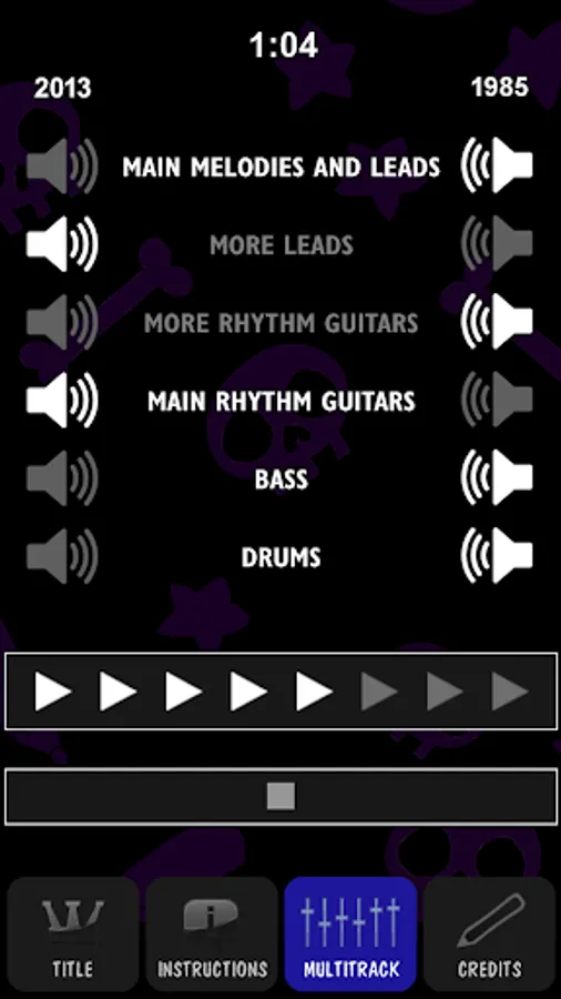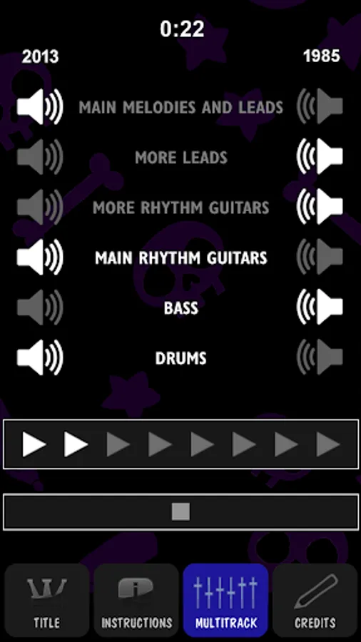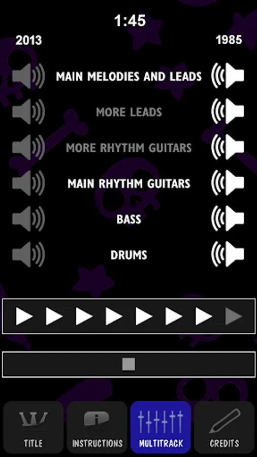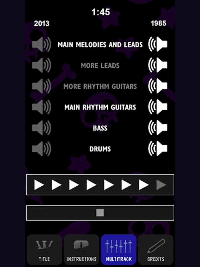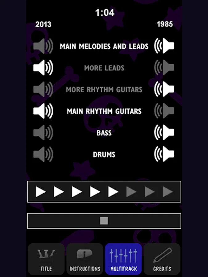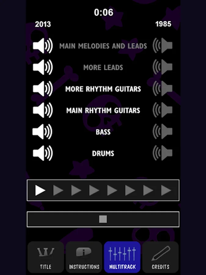 - Each track contains two "speaker" buttons which let you select which instrument you want to hear. You can hear each recorded part by itself or not at all.