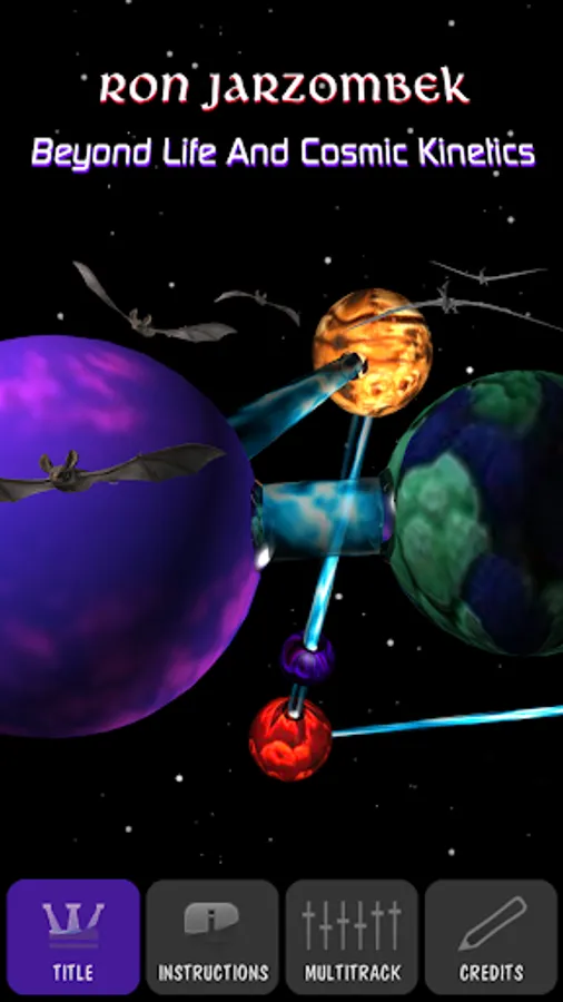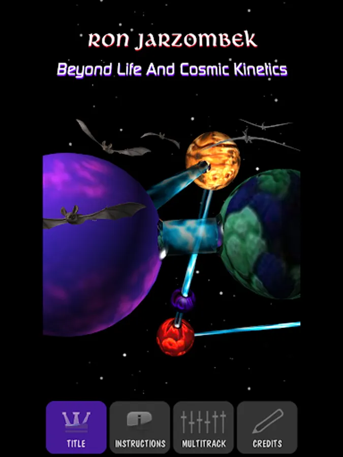 ‘Beyond Life And Cosmic Kinetics' appears via the App 6 track audio player designed by Ron Jarzombek