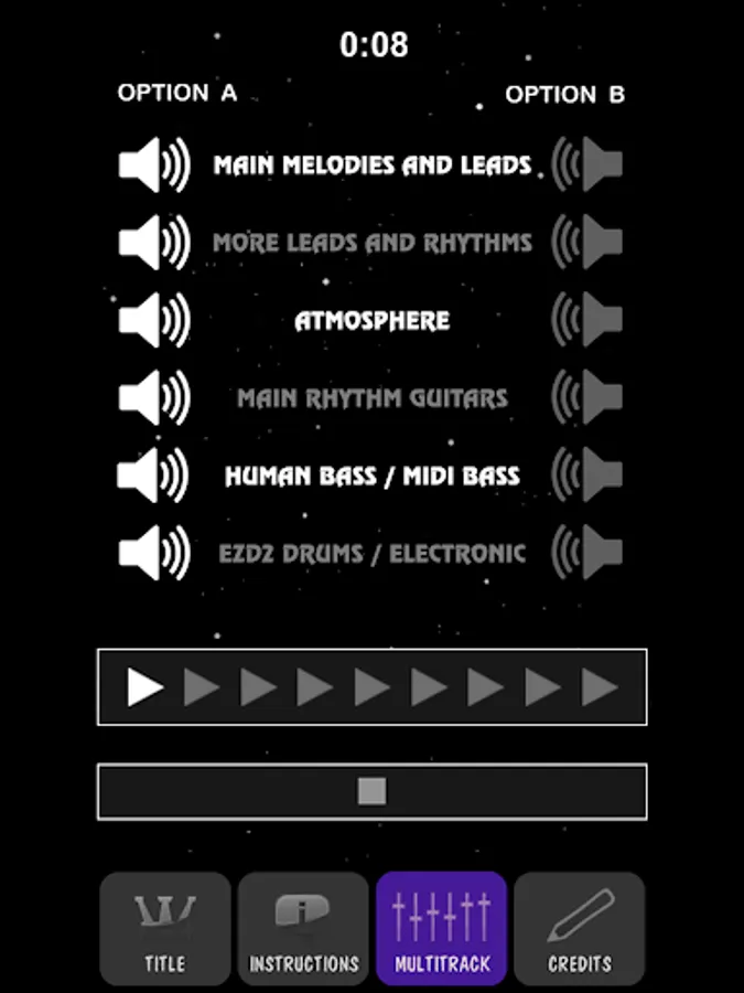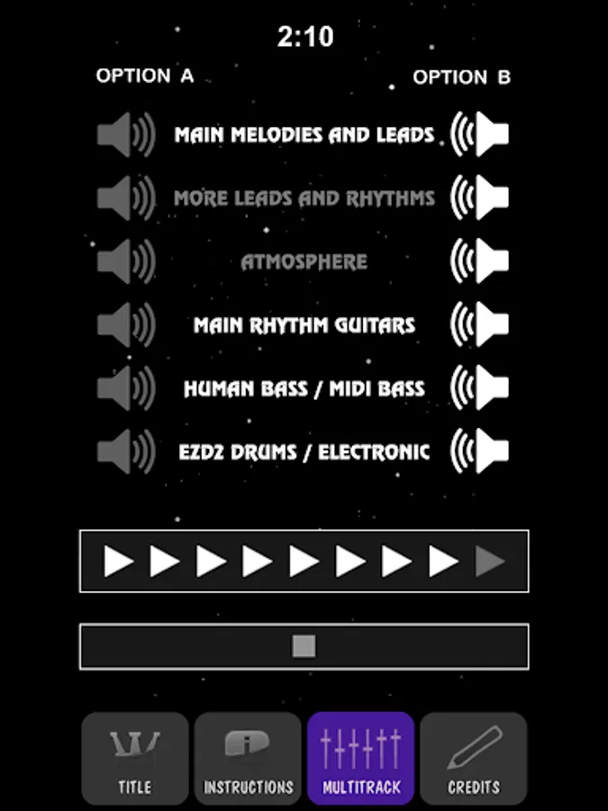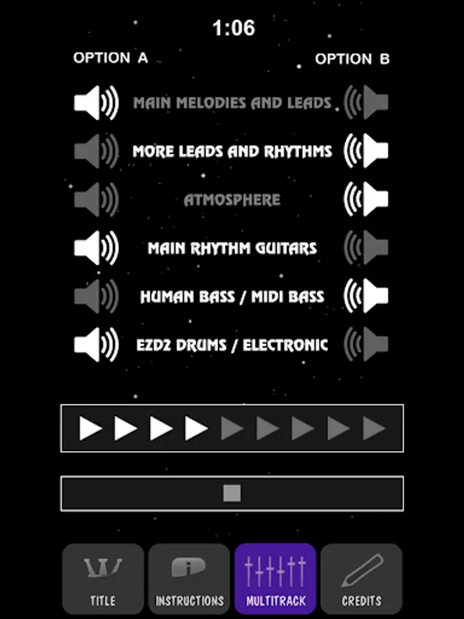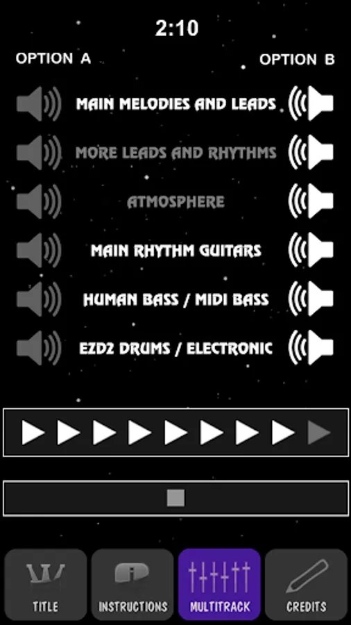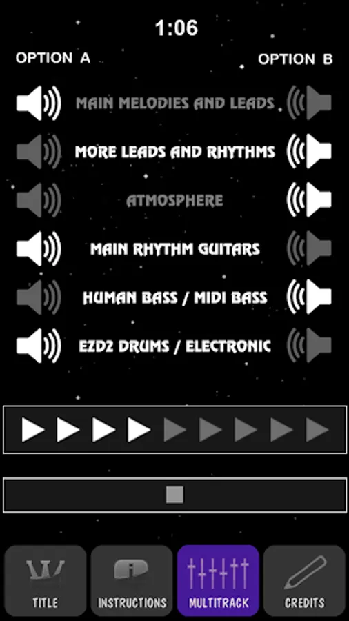 - Each track contains two "speaker" buttons which let you select which instrument you want to hear. You can hear each recorded part by itself or not at all.
