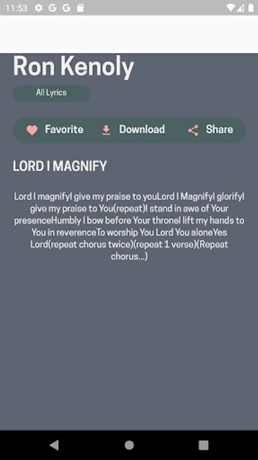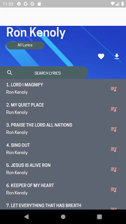 Ron Kenoly Songs lyrics makes it easier for users to sing by using the lyrics in it. Make sure the internet connection is on to use this application to read the lyrics