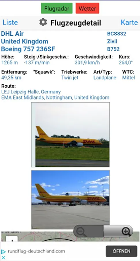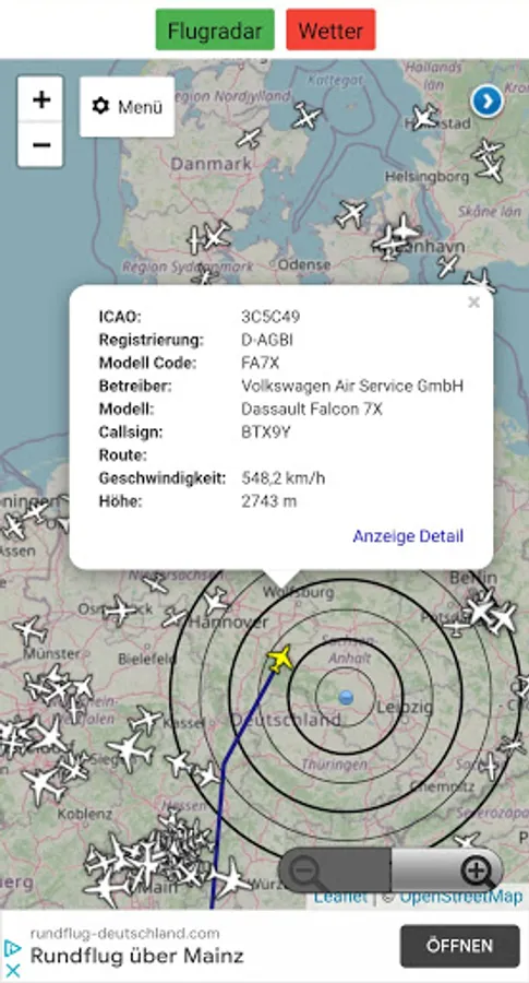 Which plane is overhead right now? Whether civil or military aircraft, take a look at the app and find out. Altitude, speed, etc. are also displayed. Weather information is also available.