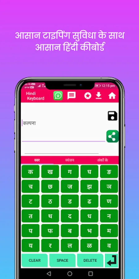 Our Hindi keyboard app is different from other app, you can write your message and save your message in our app itself and anytime you can send the message to anyone using our special share message button to various messaging and social media application.