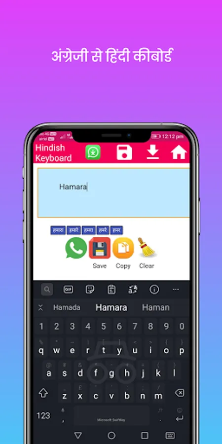 With our Hinglish keyboard you can translate English to Hindi within seconds.