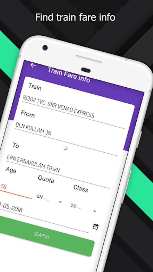 Get the train fare enquiry with respect to Age, Quota ,class and date of journey.