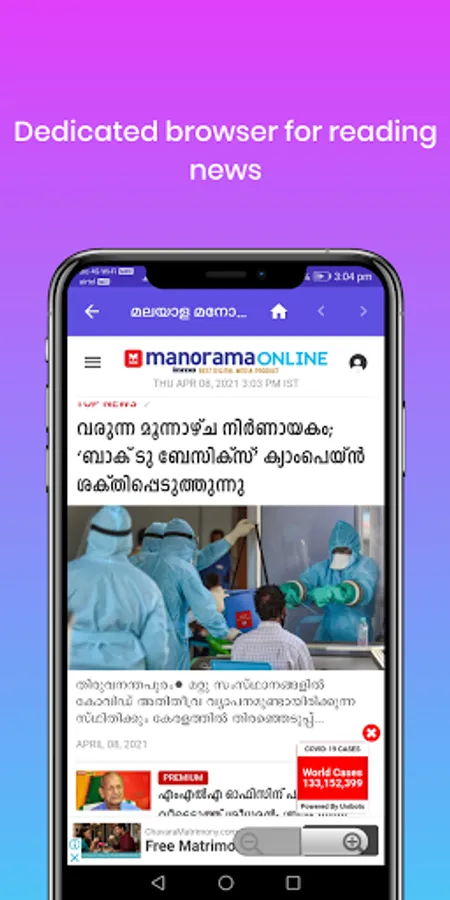 Each newspaper is provided district wise, so that you can catch the local news according to the Kerala State.