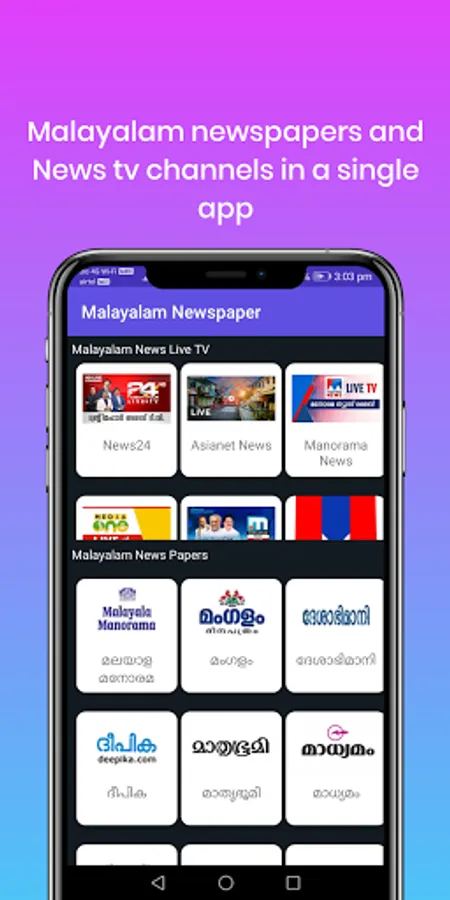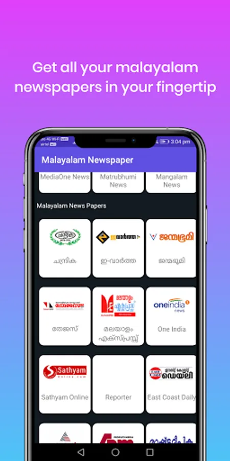 Get all Malayalam News paper in your finger tip with all new design and easy navigational application. This simple application helps you to read all popular Malayalam news papers in a simple click.