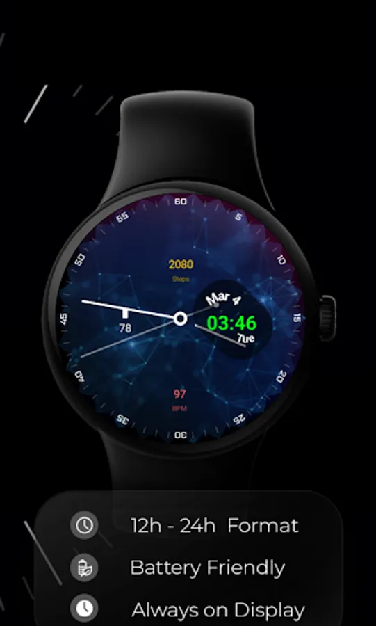 Introducing Minimal Watch Face by Galaxy Design for Wear OS, where simplicity meets sophistication. Elevate your timekeeping experience with our sleek analog watch face that boasts a range of cutting-edge features: