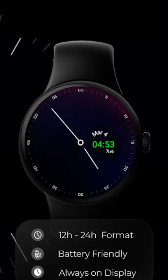 Experience the perfect blend of form and function with Minimal Watch Face by Galaxy Design. Elevate your watch game and make a statement wherever you go. Download it now!