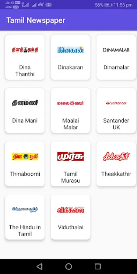 Get all Tamil News paper in your finger tip with all new design and easy navigational application. This simple application helps you to read all popular Tamil news papers in a simple click.