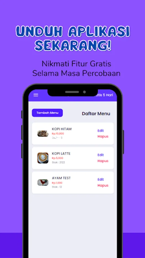 My Cafe provides application creation for your cafe, just by registering, your cafe already has an application