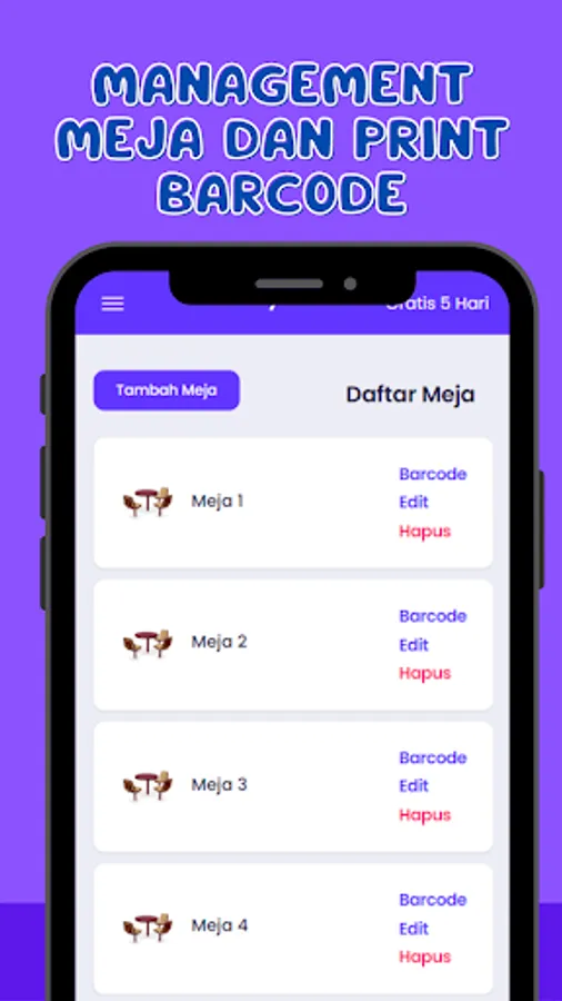My Cafe provides Easy Barcode Printing with dynamic table management