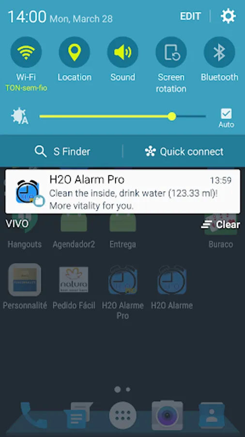 If you work in the office so leave your phone on your desk and it reminded you of drinking water, and every reminder a picture and sound different will be shown to inspire you to drink water.